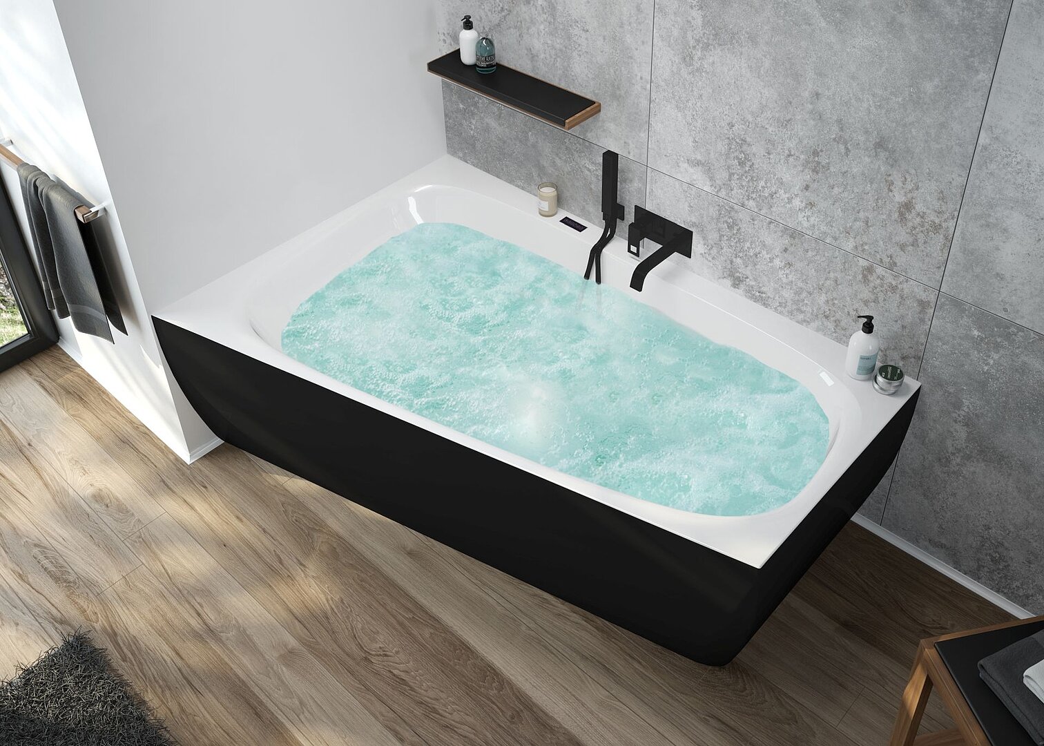 Ein besonderes Highlight der iSensi ist die innovative BiColor-Option. Damit lässt sich die Außenseite der Wanne in einer individuellen Farbe gestalten, während die Innenseite in klassischem Weiß erstrahlt. Ob edles Schwarz oder sanftes Schiefergrau – die BiColor-Gestaltung macht die iSensi zu einem wahren Blickfang im Badezimmer. So lässt sich die Luxus-Badewanne harmonisch in jedes Interieur einfügen und perfekt mit Fliesen, Möbeln oder Armaturen kombinieren.