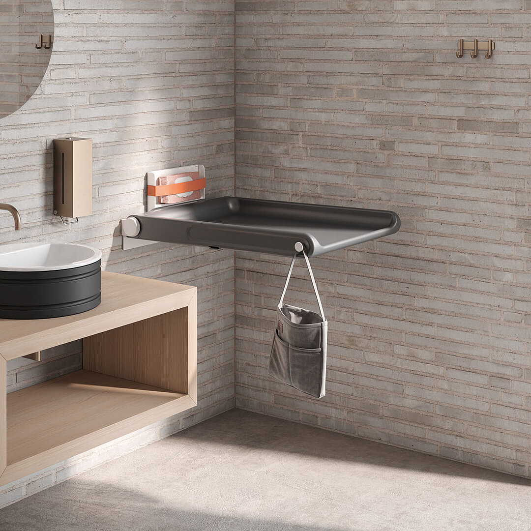 Der Babywickeltisch ist speziell für den öffentlichen Bereich entwickelt. Er bietet eine platzsparende und sichere Lösung zum Wickeln. Mit einer Belastbarkeit von bis zu 75 kg ist er stabil im Einsatz, zugleich hygienisch, leicht zu reinigen und einfach zu bedienen. Das Produkt entspricht der DIN 12221, Typ 2, erfüllt damit alle Anforderungen für den professionellen Einsatz und ist zusätzlich vom TÜV geprüft und GS-zertifiziert. Besonders praktisch: Der Wickeltisch lässt sich mit allen HEWI Serien und Systemen kombinieren und ermöglicht so eine einheitliche Ausstattung.